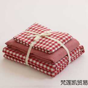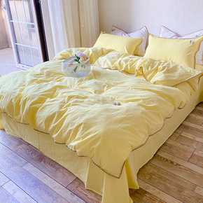 A类高级感华夫格四件套全棉纯棉水洗棉床单被套日式简...