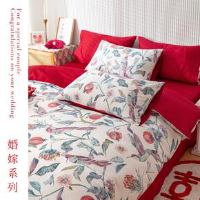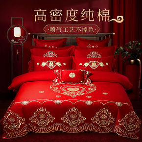 A类母婴级结婚庆四件套婚床上用品大红色纯棉100全...