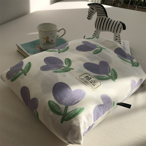 ins风韩系碎花纯棉四件套少女心双层花边被套全棉床...