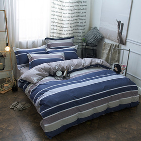 日系原宿全棉四件套家用双人水洗棉纯棉被套 条纹简约...