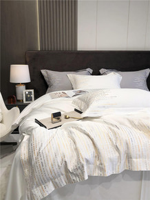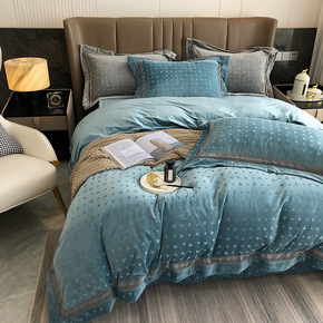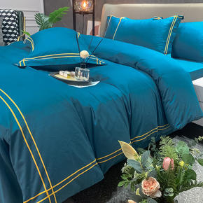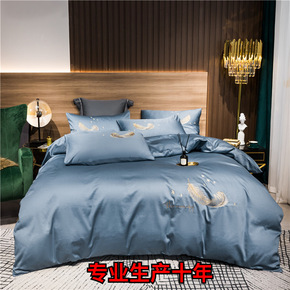 高端美式轻奢100支埃及长绒棉四件套贡缎全棉被套印...