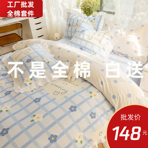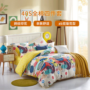 纯棉四件套13376春夏斜纹小清新印花全棉被套床单...