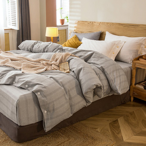 日式格子无印全棉四件套厂家良品色织水洗棉床上用品被...