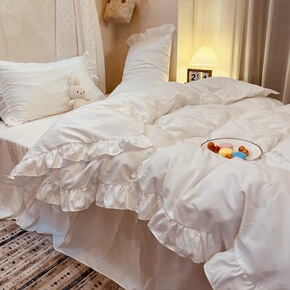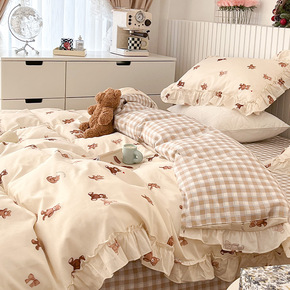 ins北欧风少女心床单被罩四件套水洗棉单人三件套纯...