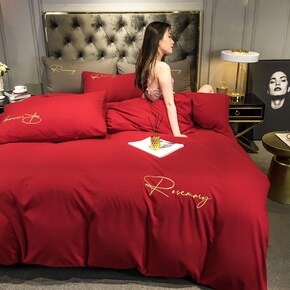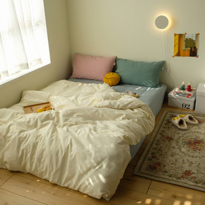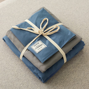 纯色日式水洗棉床上四件套1.8m简约被套床笠床单人...