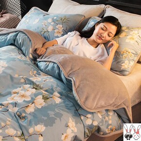 新款牛奶绒四件套冬季珊瑚绒兔兔绒被套床单床笠法兰绒...