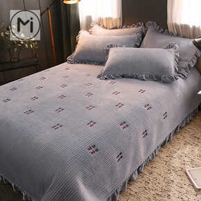 加厚刺绣水晶绒床盖夹棉床单纯棉加绒珊瑚绒毛毯三件套...