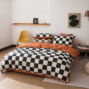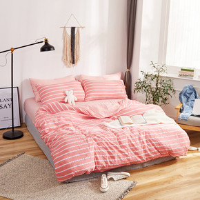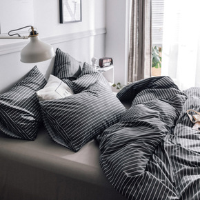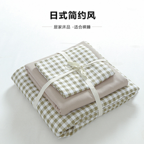 水洗棉四件套无印风良品春夏简约格子条纹四件套团购礼...