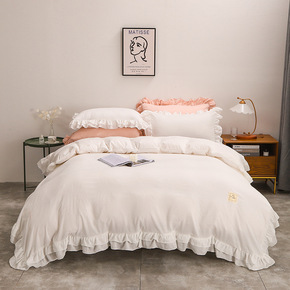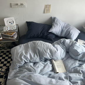 ins简约纯色水洗棉四件套床笠学生三件套宿舍春秋纯...