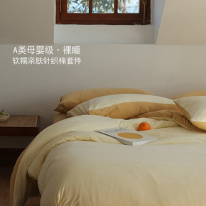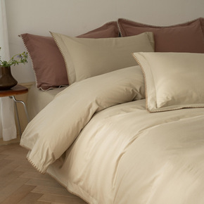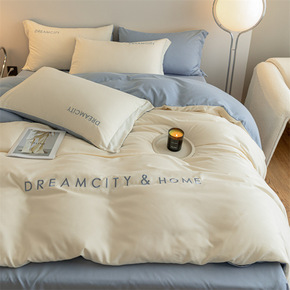 100%纯棉四件套纯色简约全棉双色被套工艺款床单床...
