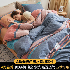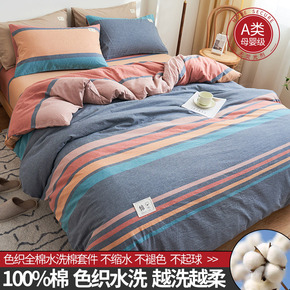 a类色织提花全棉水洗四件套素瑾纯棉A类小资简约家纺...