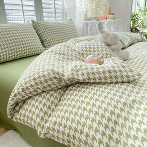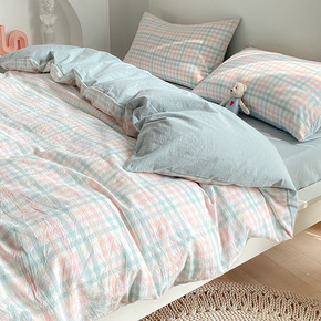 韩版泡泡纱纯棉夏被四件套公主风纯色水洗棉床单被套全...