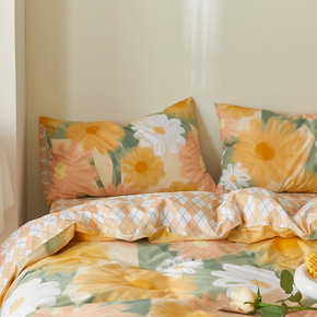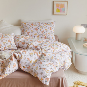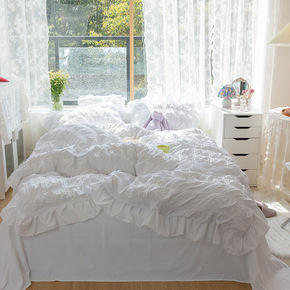 直播货源 ins新韩版小泡芙双层花边四件套水洗棉公...