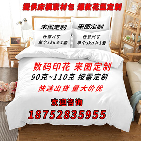 跨境三件套3D数码印花床品套件 来图定 制床单被套...