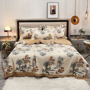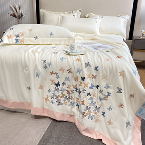 轻奢绣花水洗天丝夏被四件套礼品空调被宿舍夏凉薄被子...