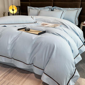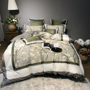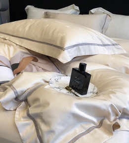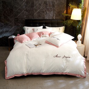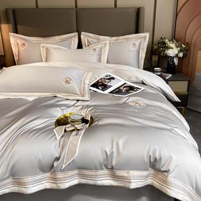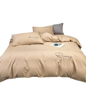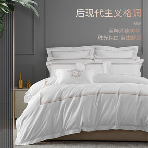 轻奢高端200支双股长绒棉纯棉四件套全棉纯色刺绣被...