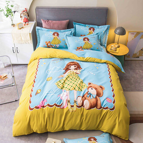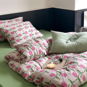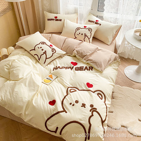 卡通清新四件套少女心水洗棉床上用品学生被套宿舍床单...