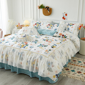 床上四件套全棉纯棉公主风蕾丝边被套床裙少女心夏季床...