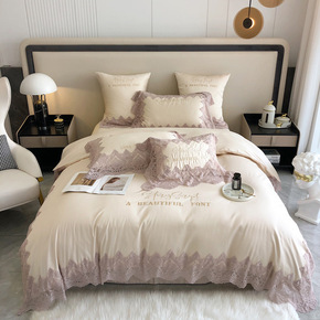 新款A类100支双股澳棉刺绣四件套长绒棉全棉花边床...