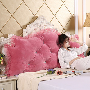 .毛绒床头大靠背榻榻米公主韩版双人床上靠垫沙发长靠...