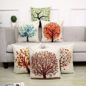 新款田园花卉ins风亚麻大树印花沙发抱枕创意床头大...
