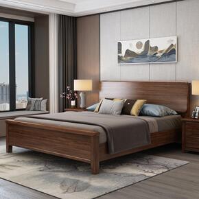 全实木床1.8米双人床现代新中式床金丝黑胡桃木床1...