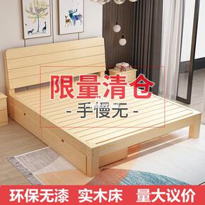 实木床1.35全实木新中式女生高脚露台简易床木板床...