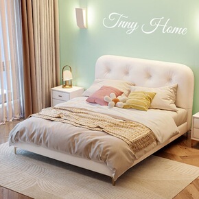 奶油风皮艺床现代简约公主床女孩儿童床实木床轻奢真皮...