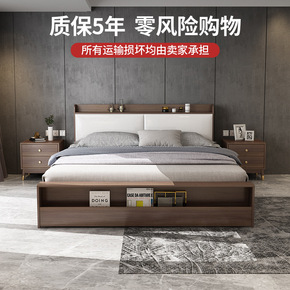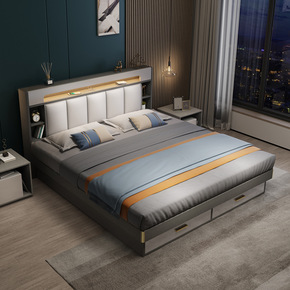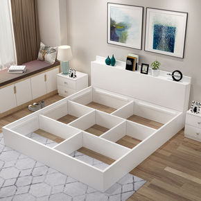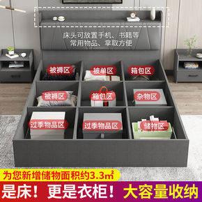 板式床现代简约双人床收纳储物床落地高箱床经济型出租...