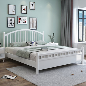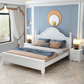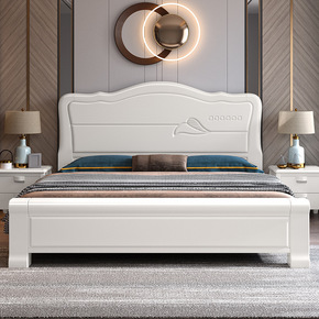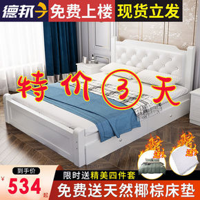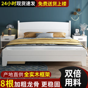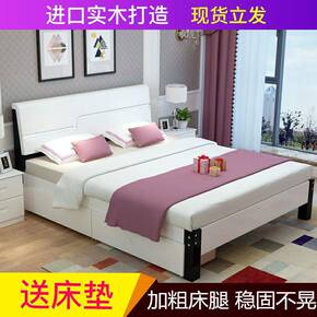 白色实木床1.8米双人床现代简约经济高箱储物主卧公...