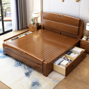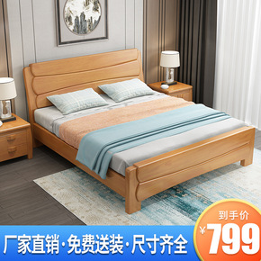实木双人床现代简约1.8米主卧1.5m中式橡木高箱...