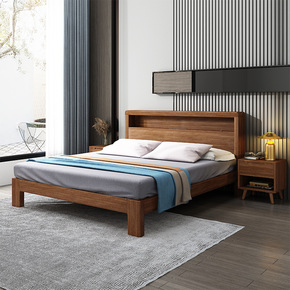 北欧实木床简约现代胡桃木主卧双人床出租屋工厂直销经...