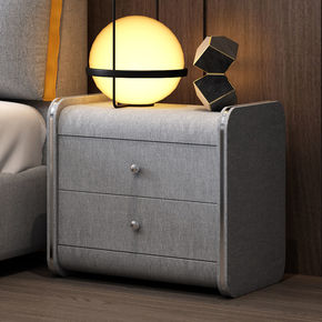 科技布床头柜布艺简约现代抽屉北欧储物实木脚轻奢卧室...