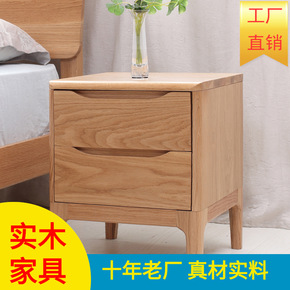 日式纯实木床头柜白橡木卧室家具储物柜环保实用二斗柜...