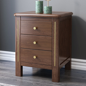 新中式实木床头柜现代胡桃木三斗柜储物柜简约卧室床边...