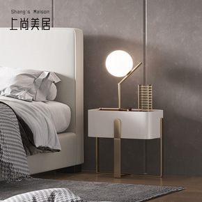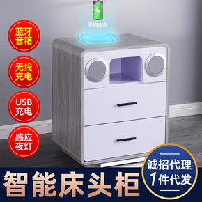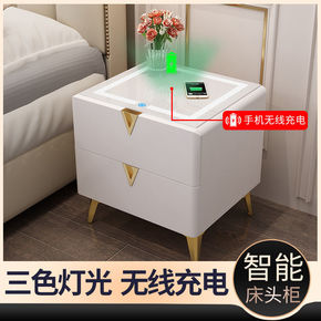 现货智能床头柜卧室烤漆收纳柜现代简约无线充电白色多...