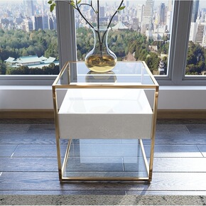 超窄床头柜简易亮光烤漆小柜子北欧卧室迷你轻奢钢化玻...