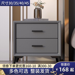床头柜简约现代轻奢实木卧室床边柜皮质极简易小型网红...