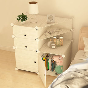 简易实木纹床头柜置物柜储物柜简易床头柜塑料儿童卧室...