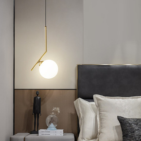 北欧卧室简约现代床头单头吊灯餐厅灯具玻璃圆球创意个...