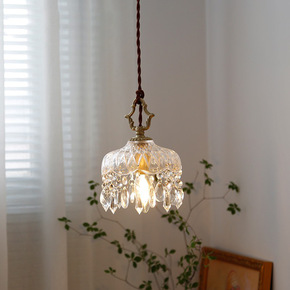 法式黄铜复古水晶小吊 美式极简ins风过道阳台床头...