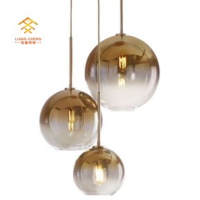 新款北欧客厅卧室床头吧台餐厅玻璃吊灯轻奢渐变玻璃圆...