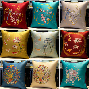 现代新中式抱枕花鸟刺绣花朵红木沙发靠垫套床头软包喜...