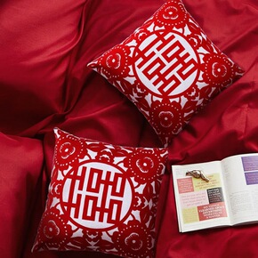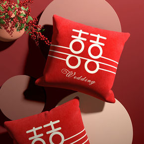 抱枕喜实木沙发靠垫结婚礼品福字喜庆汽车办公腰枕中式...