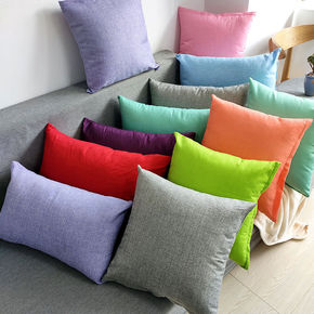 抱枕色亚麻沙发靠垫套客厅靠枕床头靠背办公室护腰枕可...