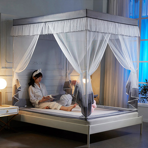 蚊帐杆子加粗加厚不锈钢支架落地宫廷架子三开门1.8...