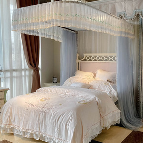 #2021新款欧式宫廷吊顶刺绣款蚊帐家用免安装大红...