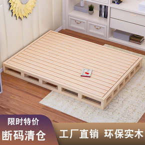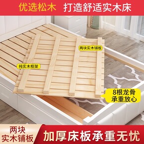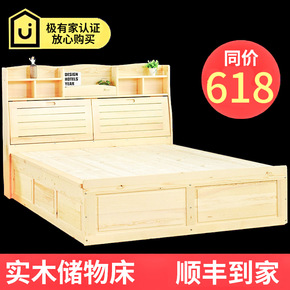 松木高箱气压床储物床1.8米双人床无床头实木床箱体...