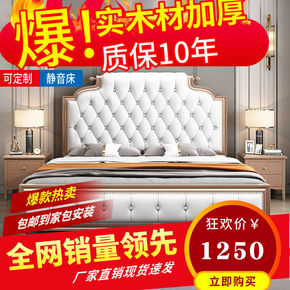 美式实木床1.8米双人床轻奢床现代简约1.5米主卧...