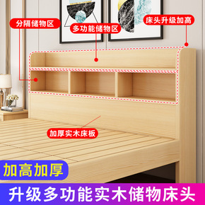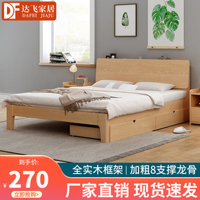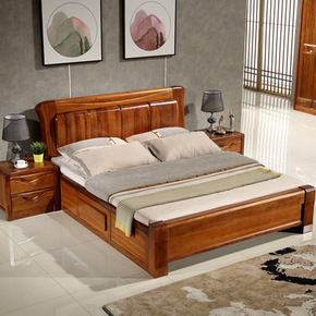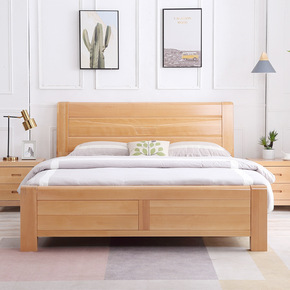 榉木实木床工厂直销简约现代全实木床1.8米高箱储物...